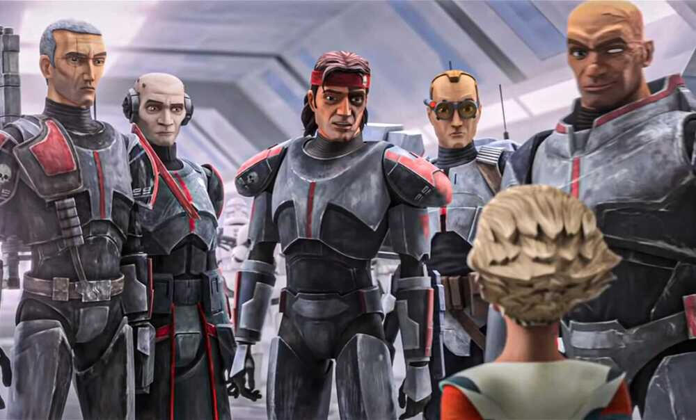 The Bad Batch has been whitewashed in two ways: through their design, and through their voice actor.Narratively speaking, the Bad Batch is written with the Five Man Band Trope as the basis of their characters and interactions. This in itself is not problematic--however, how the team chose to overlap these tropes with the appearances of each member of The Bad Batch raises some concerns among fans.Please note that as of 6/18/2022, the #UnwhitewashTBB movement has been in existence for more than one year, with growing support from more and more people both within and outside of the Star Wars audience. Despite this, Disney/Lucasfilm has not made any visible efforts to update the whitewashed designs of the Bad Batch, as exemplified by the season 2 trailer released at Star Wars Celebration: Anaheim. While the armor models were updated, none of the character's faces were changed, whether in terms of facial features or skin tone.Please note that as of 1/3/2023, supervising director Brad Rau has acknowledged the existence of #UnwhitewashTBB without an explicit promise to rectify the racist character designs in the series.